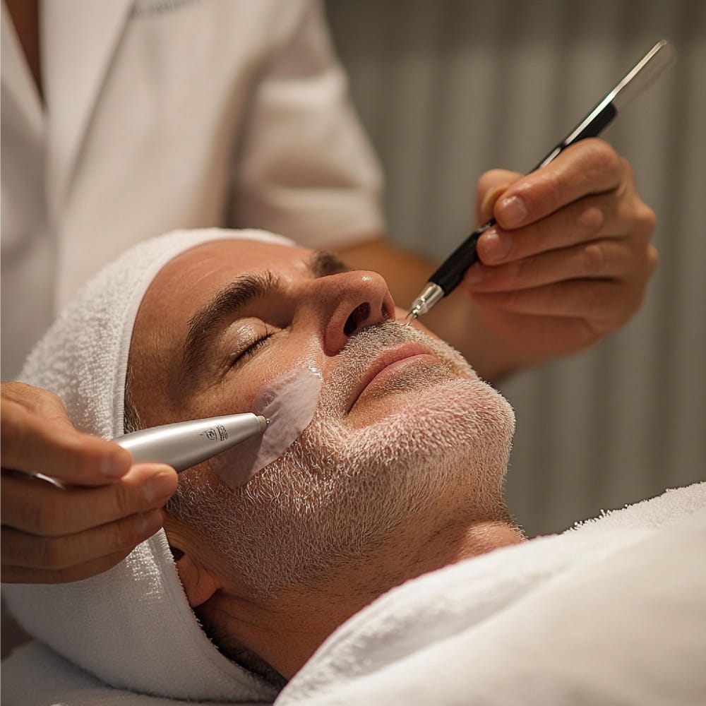 E que tal complementar com uma limpeza de pele? Sim, homens também precisam! Além de remover impurezas e cravos, ela hidrata e revitaliza a pele, dando aquele aspecto limpo e saudável que faz toda a diferença.